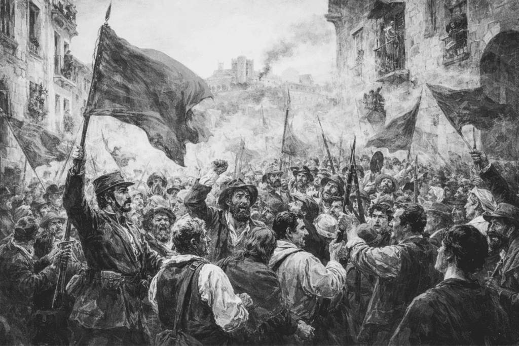 Julio de 1873: La «Algarabía» La rebelión no empieza con una batalla, sino con ruido, pero es un ruido de alegría. Saturnino describe la mañana del 12 de julio no como un combate, sino como una algarabía. El ambiente está cargado de agitación, con conversaciones acaloradas y gestos salvajes. Cuando el cañón de la fortaleza de Galeras anuncia el alzamiento a las 4:00 AM, no suena a guerra, sino a la señal de una «promesa sagrada» que se cumple.